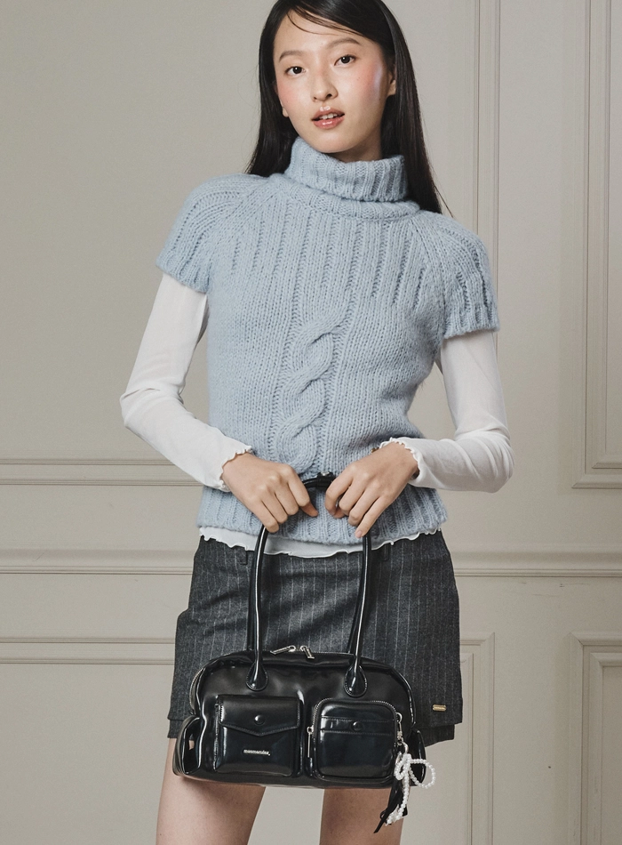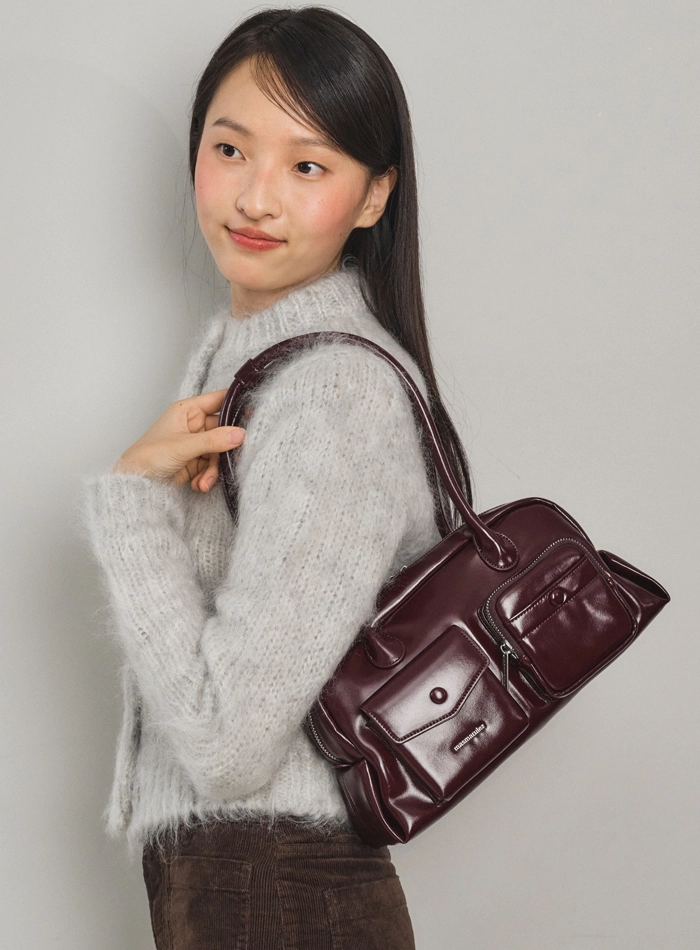 Loose fit big shoulder bag_Leopard mauve blue