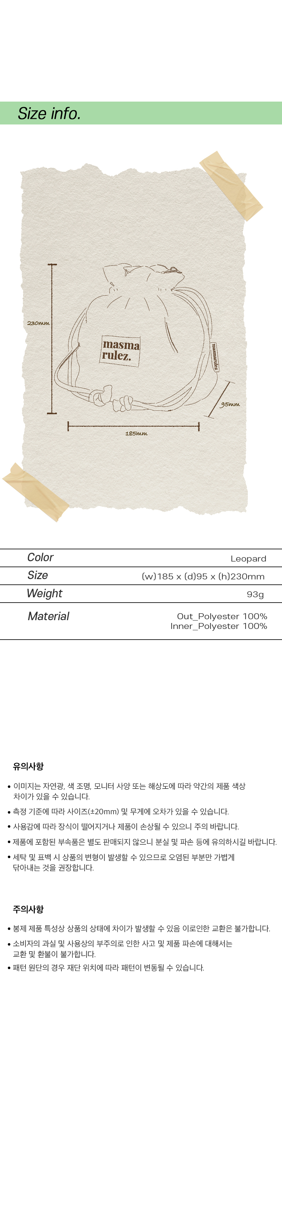 185mm×95mm×230mm, 91g(측정위치, 겉감 소재에 따라 ±5~10 차이날 수 있습니다)